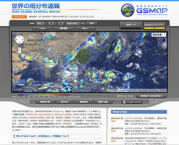 世界の雨分布速報/JAXA様 - http://sharaku.eorc.jaxa.jp/GSMaP/